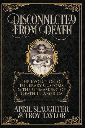 DISCONNECTED FROM DEATHTHE EVOLUTION OF FUNERAL CUSTOMS AND THE UNMASKING OF DEATH IN AMERICA BY APRIL SLAUGHTER AND TROY TAYLORAmericans have a complicated history with death – that final darkness at the end of life. Our ancestors dealt with death on a daily basis, dreaming up countless traditions and rituals to try and understand it. Society today, however, has disconnected from death. In years past, Americans died at home. Bodies were prepared for burial in our kitchens and funerals were held for our dead in the parlor. Now, we die under the sterile conditions of a hospital, far removed from the people who love us, and our death has become a business. From the God-fearing Puritans to the aftermath of the Civil War, the Victorian descent into mourning to modern day funeral traditions, authors April Slaughter and Troy Taylor take the reader along on a journey through America’s history with death, dying, and how they’ve shaped our society today. This is not a book about religion, or what happens to us after we die. This is a book that tries to connect our modern lives to the lives of those who had more than a passing acquaintance with death. Far too often, the traditions and rituals of the past have been presented as “spooky” or “strange” and, while some of them were unusual, all of them served a purpose. No matter how bizarre they might seem, they managed to present a vivid portrait of how we are all connected to death. Death is – and always will be – a part of life and we hope this book will shed some light on the funeral customs, practices, and traditions of the past and how they have been changed, softened, and sterilized to make death seem like a distant stranger. Death was once a familial responsibility - a reality modern day American funeral directors would have you forget - but how did we become a nation so heavily dependent on them? What other options do we have? The answer is far more than you might have expected. We may not be as close to death as our ancestors were, but we can assure you that it’s still with us, waiting to take us by the hand and lead us into the unknown