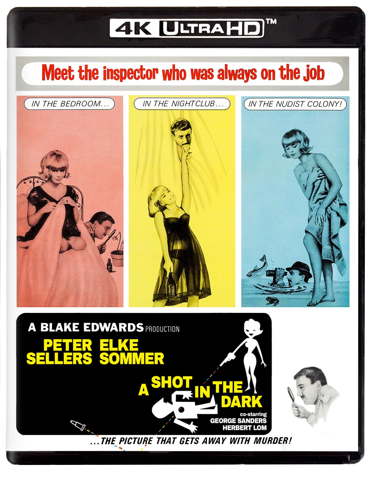 The second movie in the classic Pink Panther series of crime comedies, A Shot in the Dark is a brilliant re-teaming of director/co-writer Blake Edwards and star Peter Sellers — at his hilarious best as the fearlessly dedicated yet haplessly distracted Inspector Clouseau. Accidentally assigned to a high-profile murder case at a wealthy estate, the fuddled French detective immediately falls head over heels — when not falling out of windows and into ponds! — for the prime suspect, beautiful parlor maid Maria Gambrelli (Elke Sommer). There’s no lengths Clouseau won’t go to in championing Maria as innocent, from disobeying his ferociously furious boss Dreyfus (Herbert Lom) to disrobing at a nudist colony. But when more and more murders occur, will the Inspector himself stay alive long enough to solve the baffling case? George Sanders and Tracy Reed co-star along with — marking their series debuts — Pink Panther fan favorites Graham Stark, Andre Maranne, and karate-chopping Burt Kwouk.