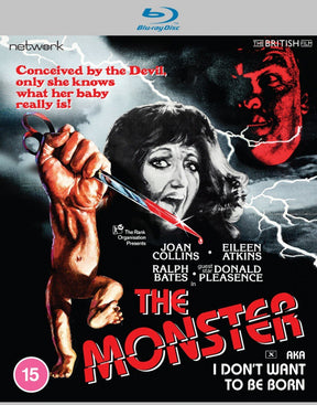 Joan Collins gives an instantly memorable performance as a stripper cursed by a dwarf to give birth to a demonic child in this classic '70s exploitation horror directed by Hammer/Amicus veteran Peter Sasdy. Co-starring Eileen Atkins, Ralph Bates, Donald Pleasence and Caroline Munro, The Monster (aka I Don't Want to be Born) is featured here as a brand-new High Definition remaster from original film elements in its original theatrical aspect ratio.