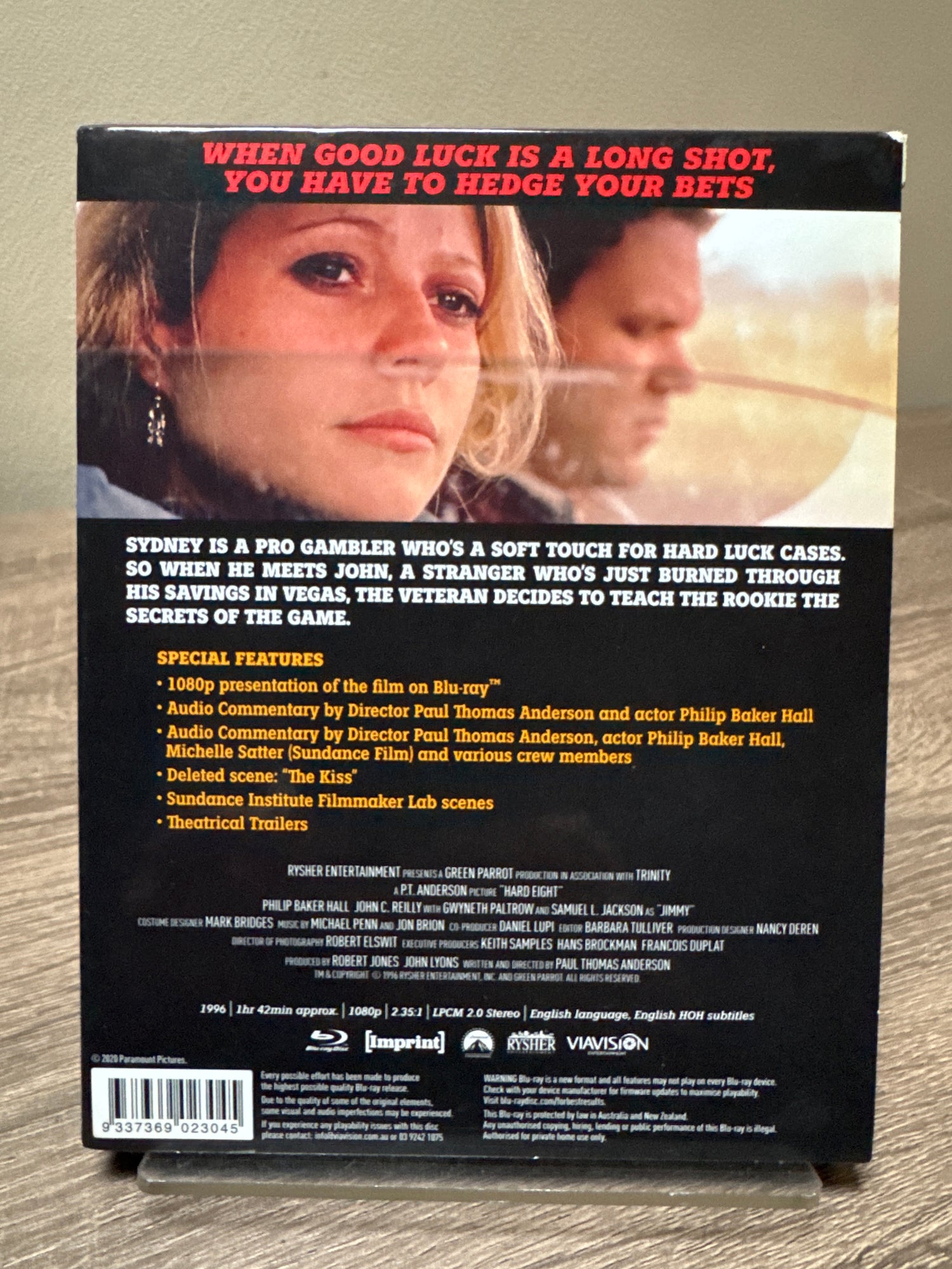 Intense drama follows Sydney (Philip Baker Hall), a veteran gambler who takes down-on-his-luck young man John Finnegan (John C. Reilly) under his wing and shows him how to wager in the big leagues. The two new friends take their act to Reno, where Finnegan's feelings for a beautiful cocktail waitress (Gwyneth Paltrow) may lead him to roll the dice one time too many. Samuel L. Jackson and Philip Seymour Hoffman co-star in Paul Thomas Anderson's directorial debut, an expansion of his highly regarded 1993 short film, "Cigarettes & Coffee." AKA: "Sydney." 100 min. Widescreen; Soundtrack: English; deleted scene; audio commentary by Anderson, Hall, others; theatrical trailers. Region Free