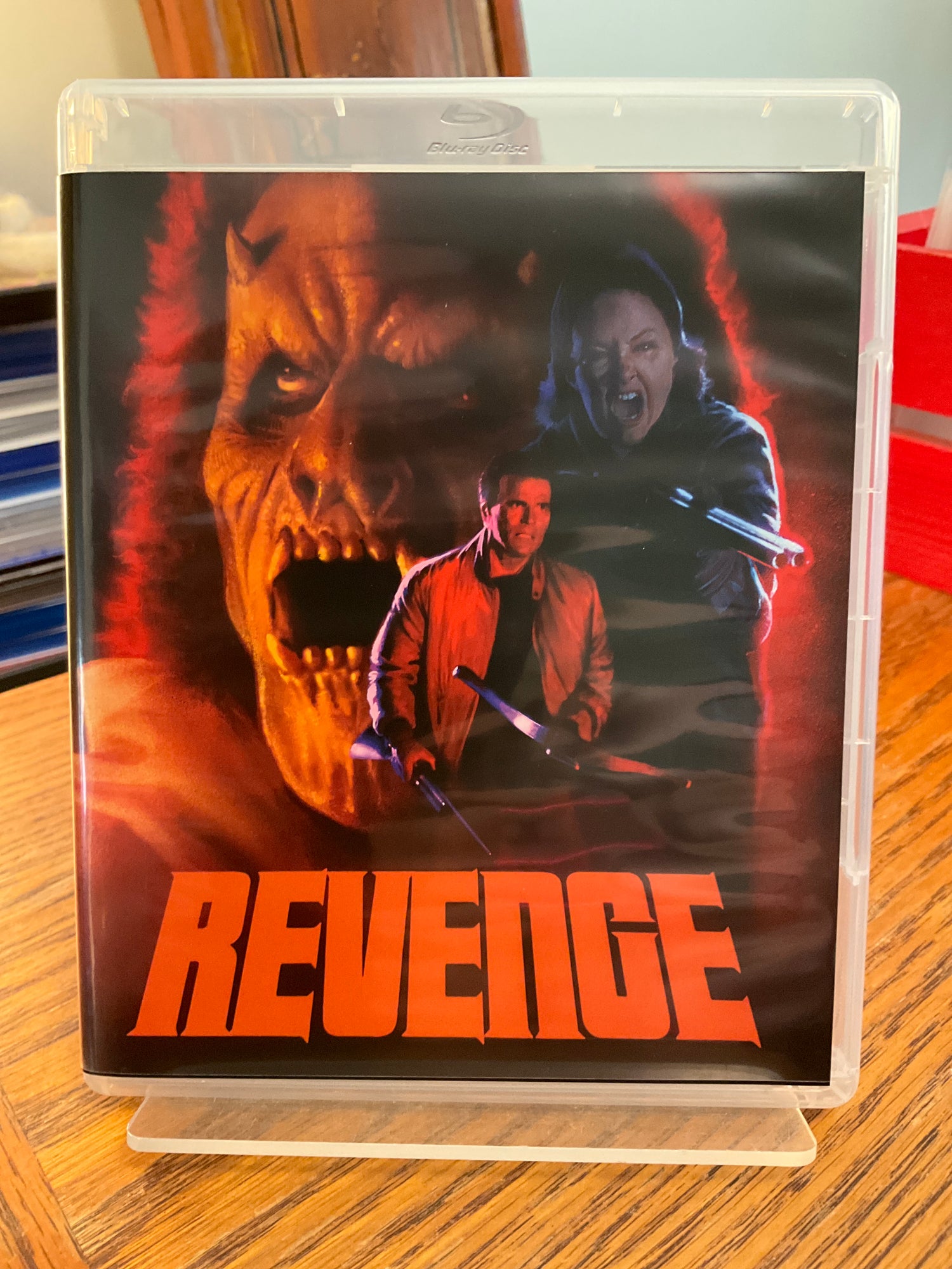 The sequel to the Tulsa, Oklahoma-lensed shot-on-video favorite Blood Cult (1985), often touted as the first film made specifically for the home video market, REVENGE - the third and final horror feature from husband and wife directing/producing duo Christopher and Linda Lewis - picks up immediately after the events of its predecessor, upping the ante by throwing supernatural elements into the mix and enhancing production values by switching to 16mm film and pulling in star power in the form of Patrick Wayne (Sinbad and the Eye of the Tiger) and John Carradine (Buried Alive), appearing in one of his final screen roles. Culminating in a wild, fiery climax featuring a show-stopping turn from Carradine, 1986’s REVENGE is at last summoned up in its world Blu-ray premiere by the celluloid cultists at Vinegar Syndrome, painstakingly restored from its original 16mm camera negative and loaded with an array of new and archival extras.