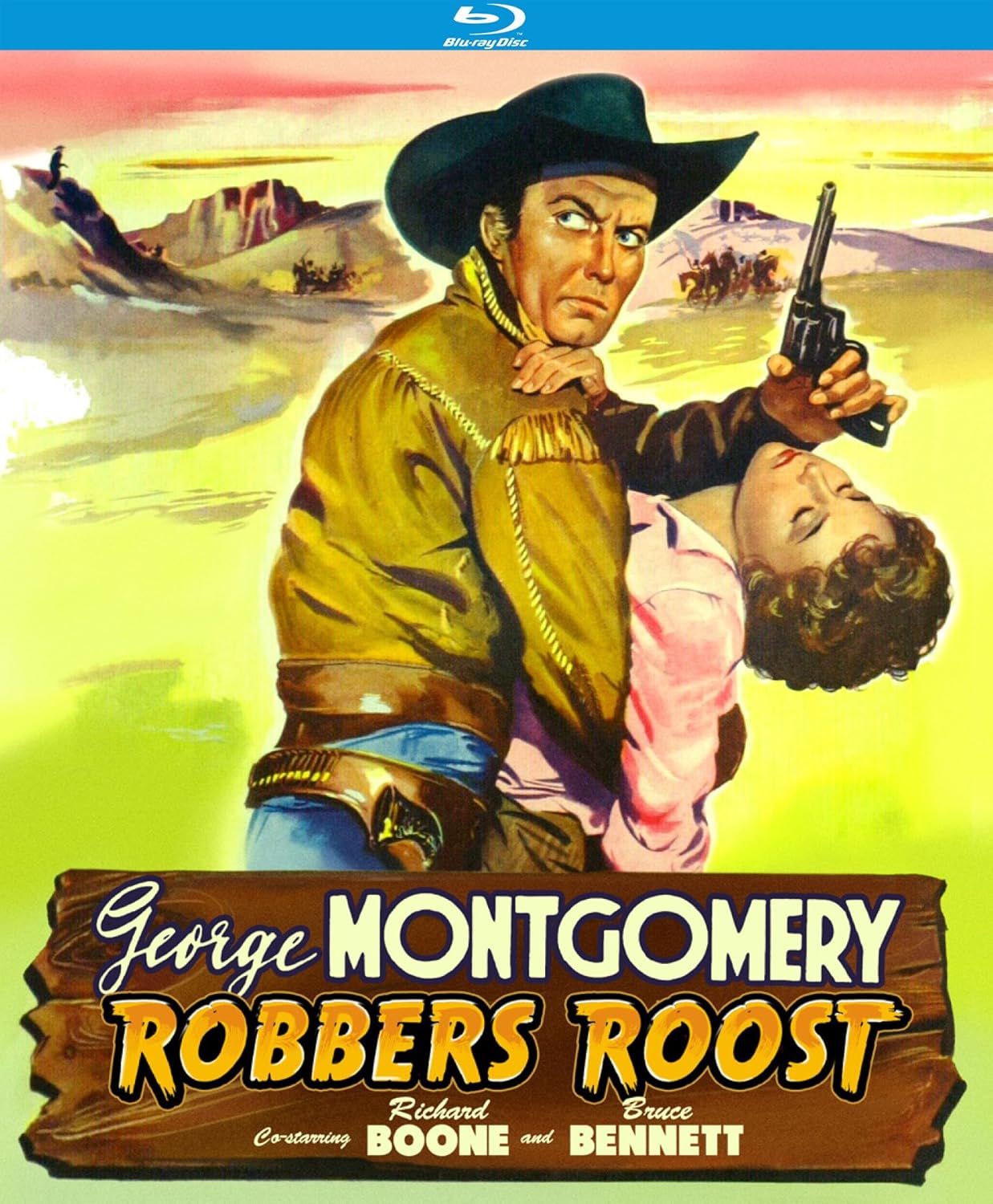 The most savage killers lair in the west! George Montgomery (The Brasher Doubloon) stars as Jim Tex Wall, a rancher turned outlaw searching for three men who raped and killed his wife. Trailing the killers, he lands an honest job as a cowhand on the spread managed by the disabled Bull Herrick (Bruce Bennett, Sahara). When Bull's sister (Sylvia Findley) is kidnapped by a gang of outlaws, Tex seeing an opportunity to redeem himself; rides to her rescue. Veteran filmmaker Sidney Salkow (Twice-Told Tales) directs this gorgeously photographed western, featuring a stellar cast that includes the great Richard Boone (Big Jake), Peter Graves (TV's Mission: Impossible) and Warren Stevens (Forbidden Planet). Robbers' Roost was the second version of the venerable Zane Grey (Western Union) yarn.