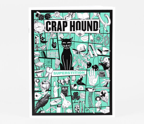Through sheer volume of artfully arranged iconography, Crap Hound provides a visual survey of dozens of popular and lesser known superstitions.