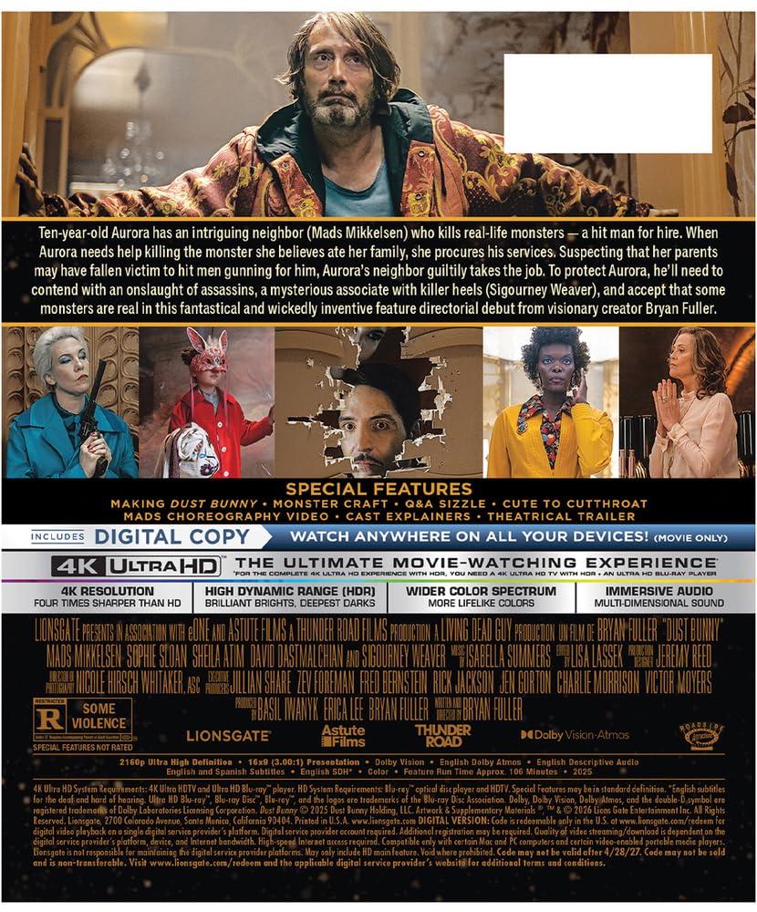 When 10-year-old Aurora needs help killing the monster she believes ate her family, she hires her hit man neighbor (Mads Mikkelsen). Suspecting the girl's parents may have fallen victim to hit men gunning for him, Aurora's neighbor guiltily takes the job. To protect Aurora, he'll need to contend with an onslaught of assassins, a mysterious associate with killer heels (Sigourney Weaver), and accept that some monsters are real in this inventive feature directorial debut from creator Bryan Fuller.