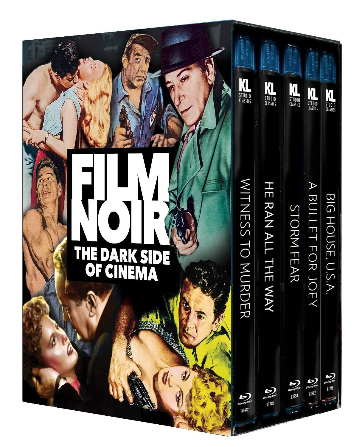 This collection features five film Noir classics. BIG HOUSE, U.S.A. (1955) – Broderick Crawford, Ralph Meeker, Charles Bronson, Lon Chaney Jr. and William Talman star in this tough and realistic crime drama about a gang of ruthless convicts who execute a successful prison break to secure a $200,000 loot hidden in Colorado’s Royal Gorge National Park. Directed by Howard W. Koch (Shield for Murder). A BULLET FOR JOEY (1955) –When a Canadian police inspector (Edward G. Robinson) investigates a murder, he is hurtled into an adventure involving foreign spies, American gangsters and an explosive high-tech secret that could change the world. Co-starring George Raft, Audrey Totter and Peter van Eyck with top-notch direction by Lewis Allen (So Evil My Love). HE RAN ALL THE WAY (1951) – John Garfield plays a dim-witted thug who survives a shootout with the police after a payroll robbery. Seeking cover, he meets Peggy a lonely young girl (Shelley Winters) who takes him to her family’s apartment, while there the paranoid thief decides to takes the family hostage until he can escape. Directed by John Berry (Tension). STORM FEAR (1955) – Cornel Wilde plays a wounded bank robber, on the run from the law, he and his gang decide hide out at his brother (Dan Duryea) and sister-in-law’s (Jean Wallace) farmhouse during a snowstorm. Co-starring Lee Grant, Dennis Weaver and Steven Hill, with stupendous direction by Cornel Wilde (Beach Red). WITNESS TO MURDER (1954) – Screen legend Barbara Stanwyck, plays a woman whose sanity comes into question as she fights to convince the police that she witnessed a murder from her apartment window. Co-starring George Sanders, Gary Merrill and Jesse White, with wonderful direction by Roy Rowland (Rogue Cop).