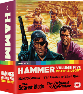 Hammer Volume Five: Death & Deceit collects four films from the early sixties which found Hammer Films looking beyond the horror genre for its next box-office success. Visa to Canton (1961, released in the US as Passport to China) is a torn-from-the-headlines spy thriller; The Pirates of Blood River (1962), starring Kerwin Mathews (The 7th Voyage of Sinbad) and Christopher Lee (The Face of Fu Manchu), is a swashbuckling adventure; The Scarlet Blade (1963, released in the US as The Crimson Blade) is an English Civil War-set actioner which follows the fortunes of Cromwell’s Roundheads; and The Brigand of Kandahar (1965) takes Hammer to the North-West Frontier for an action-adventure starring Ronald Lewis (Taste of Fear) and Oliver Reed (The System). All four films are presented for the first time on Blu-ray in the UK, while Visa to Canton, The Scarlet Blade and The Brigand of Kandahar make their world Blu-ray premieres. This collection is strictly limited to 6,000 numbered units.