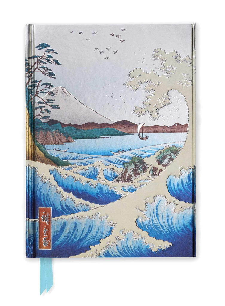 Part of a series of exciting and luxurious Flame Tree Notebooks. Combining high-quality production with magnificent fine art, the covers are printed on foil in five colours, embossed then foil stamped. And they’re powerfully practical: a pocket at the back for receipts and scraps, two bookmarks and a solid magnetic side flap. These are perfect for personal use and make a dazzling gift. This example features Hiroshige's timeless Sea at Satta design.