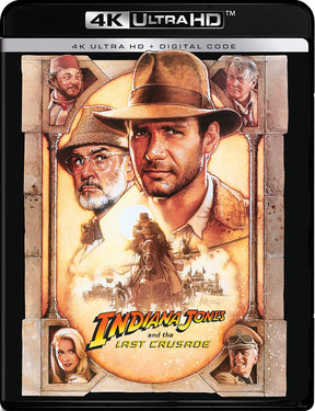The third chapter in the Indy saga finds fearless antiquarian Indiana Jones (Harrison Ford) teaming with estranged father Prof. Henry Jones, Sr. (Sean Connery) on a search for the fabled Holy Grail. Can the Jones boys put their differences aside and keep the Grail from falling into the hands of the Nazis? With Denholm Elliott, John Rhys-Davies, Alison Doody, Julian Glover, and River Phoenix in the "Young Indy" prologue; directed by Steven Spielberg. 126 min. Widescreen; Soundtracks: English Dolby Atmos, French Dolby Digital 5.1; Subtitles: English, French; theatrical trailers.