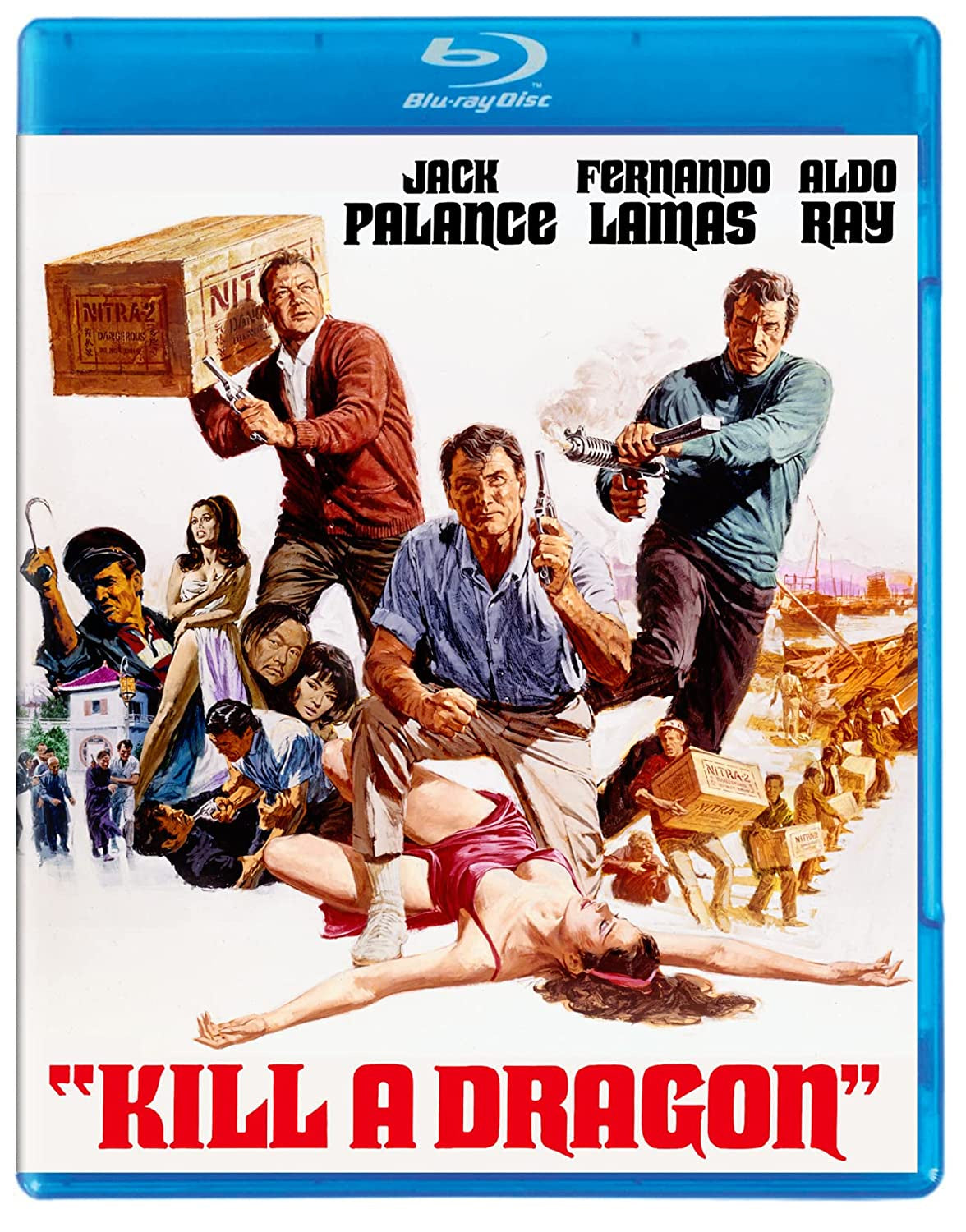 Soldier of fortune Jack Palance (Attack) squares off against warlord Fernando Lamas (100 Rifles) in the explosive action-adventure, Kill a Dragon. When a dangerous load of nitroglycerin lands on a beach near Hong Kong, the islanders claim it as their own. But the powerful Nico Patrai (Lamas) threatens to destroy the island and its inhabitants if the cargo is not given to him in three days. The villagers turn to swaggering mercenary Rick Masters (Palance) and his team of karate experts to help smuggle the nitroglycerin off their island and rid them of the ruthless Patrai and his henchmen once and for all. Helmed by veteran television and Hollywood filmmaker Michael D. Moore (The Fastest Guitar Alive) and co-starring Aldo Ray (And Hope to Die) and Aliza Gur (From Russia with Love), Kill a Dragon mixes rousing action with all the wonder and excitement of beautiful Hong Kong!