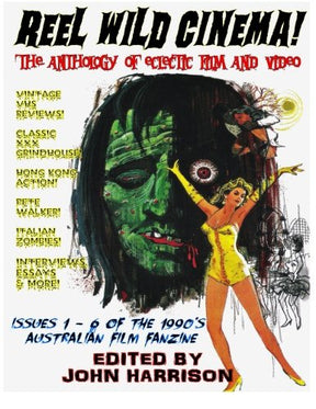 A compendium of issues 1 - 6 of REEL WILD CINEMA!, the 1990's Australian fanzine devoted to off-beat, cult and exploitation films of all kind, and from all eras, with a particular emphasis on covering genre films which had been released on home video in that country during the previous 15 years. REEL WILD CINEMA! was an A4 photocopied fanzine published by John Harrison out of the outer Melbourne suburban wasteland of Berwick, with six issues appearing between 1997 - 1999. Devoted to all manner of cult and eclectic/off-beat films, REEL WILD CINEMA! rode the tail of the classic wave of cut & paste film fanzines of the 1980s and 90s, before the internet exploded and changed the landscape of fan publishing forever. Contents Include: Vintage & Obscure Exploitation VHS Reviews Interviews (David Lynch, Debbie Rochon, Pat Priest, Steven Jon White, Bill Tung & More) Hong Kong Action Flicks Marjoe Gortner: From Child Evangelist to Psycho Hippy BLESS THE BEASTS & CHILDREN EXCITING CINEMA Magazine Italian Zombie Gut-Munchers BEYOND THE DARKNESS The World for Christ: Inside Pete Walker's Dark House of Horrors Classic XXX Grindhouse Sinema CARNIVAL OF SOULS Ron Haydock Toni Basil Taylor & Burton go BOOM! 80's Teen Sex Comedies PLANET OF THE VAMPIRES & Lots More! Introduction by Michael Helms (FATAL VISIONS Editor) Reprinted in it's Original Old School Format! ADULT READING!!
