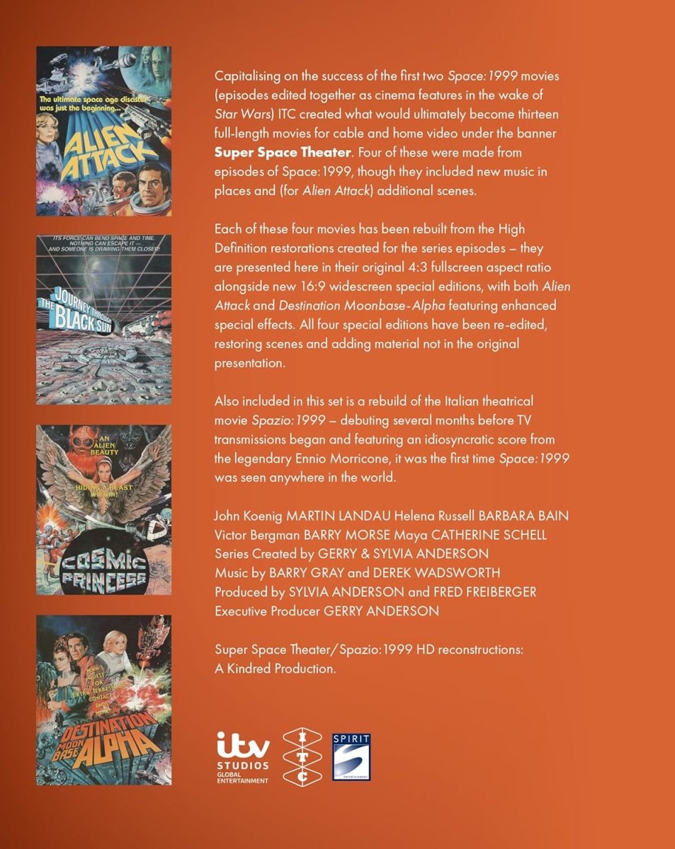 Each of these four movies has been rebuilt from the High-Definition restorations created for the series episodes – they are presented here in their original 4:3 full screen aspect ratio alongside new 16:9 widescreen special editions, with both Alien Attack and Destination Moonbase-Alpha featuring enhanced special effects. All four special editions have been re-edited, restoring scenes and adding material not in the original presentation.