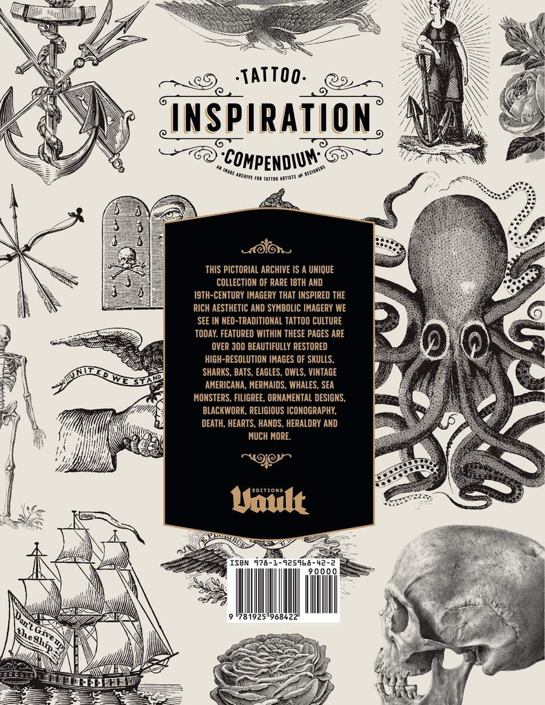 This pictorial archive is a unique collection of rare 18th and 19th-century imagery that inspired the rich aesthetic and symbolic imagery we see in neo-traditional tattoo culture today. Featured within these pages are over 300 beautifully restored high-resolution images of skulls, sharks, bats, eagles, owls, vintage Americana, mermaids, whales, sea monsters, filigree, ornamental designs, blackwork, religious iconography, death, hearts, hands, heraldry and much more.