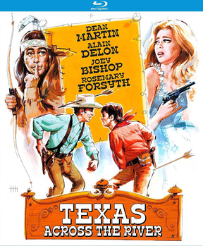 From Michael Gordon, the outstanding director of An Act of Murder, The Lady Gambles, Woman in Hiding, Cyrano de Bergerac, Pillow Talk and Portrait in Black, comes this wonderful comedy-western starring screen icons Dean Martin (Rio Bravo, Something Big) and Alain Delon (The Sicilian Clan,Un Flic). The Louisiana wedding of debutante Phoebe Ann Naylor (Rosemary Forsyth, The War Lord) to Don Andrea de Baldasar, El Duce de la Casala (Delon) is stopped by the cavalry over a matter of honor. Don Andrea flees across the river to Texas, where he meets up with Sam Hollis (Martin) and his Indian sidekick, Kronk (Joey Bishop, Ocean’s 11), who are carrying rifles to the town of Moccasin Flats. Don Andrea rescues an Indian maiden, Lonetta (Tina Aumont, Man, Pride & Vengeance), tames some longhorns, competes with Sam for Phoebe’s affections, eludes a Comanche war party and the cavalry (who have come to Moccasin Flats to celebrate Texas statehood) and ultimately saves the town and gets his girl. Co-starring Peter Graves (Robbers’ Roost), Michael Ansara (The Pink Jungle) and Andrew Prine (They’re Playing with Fire).