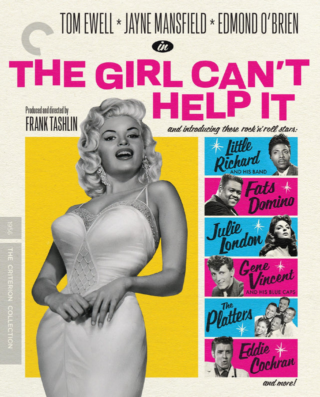 In 1956, Frank Tashlin brought the talent for zany visual gags and absurdist pop-culture satire that he’d honed as a master of animation to the task of capturing, in glorious De Luxe Color, a brand-new craze: rock and roll. This blissfully bonkers jukebox musical tells the story of a mobster’s bombshell girlfriend—the one and only Jayne Mansfield, in a showstopping first major film role—and the washed-up talent agent (Tom Ewell) who seeks to revive his career by turning her into a musical sensation. The question is: Can she actually sing? A CinemaScope feast of eye-popping midcentury design, The Girl Can’t Help It bops along to a parade of performances by rock-and-roll trailblazers—including Little Richard, Fats Domino, Julie London, Eddie Cochran, the Platters, and Gene Vincent—who light up the screen with the uniquely American sound that was about to conquer the world.
