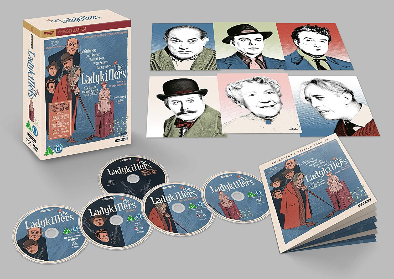 Collector's includes - 5 disc (DVD, X2 BD, UHD, CD Glorious Ealing Films soundtrack disc) 6 pop-art artcards of the gang and Mrs Wilberforce, a 64 page booklet with new essays.
