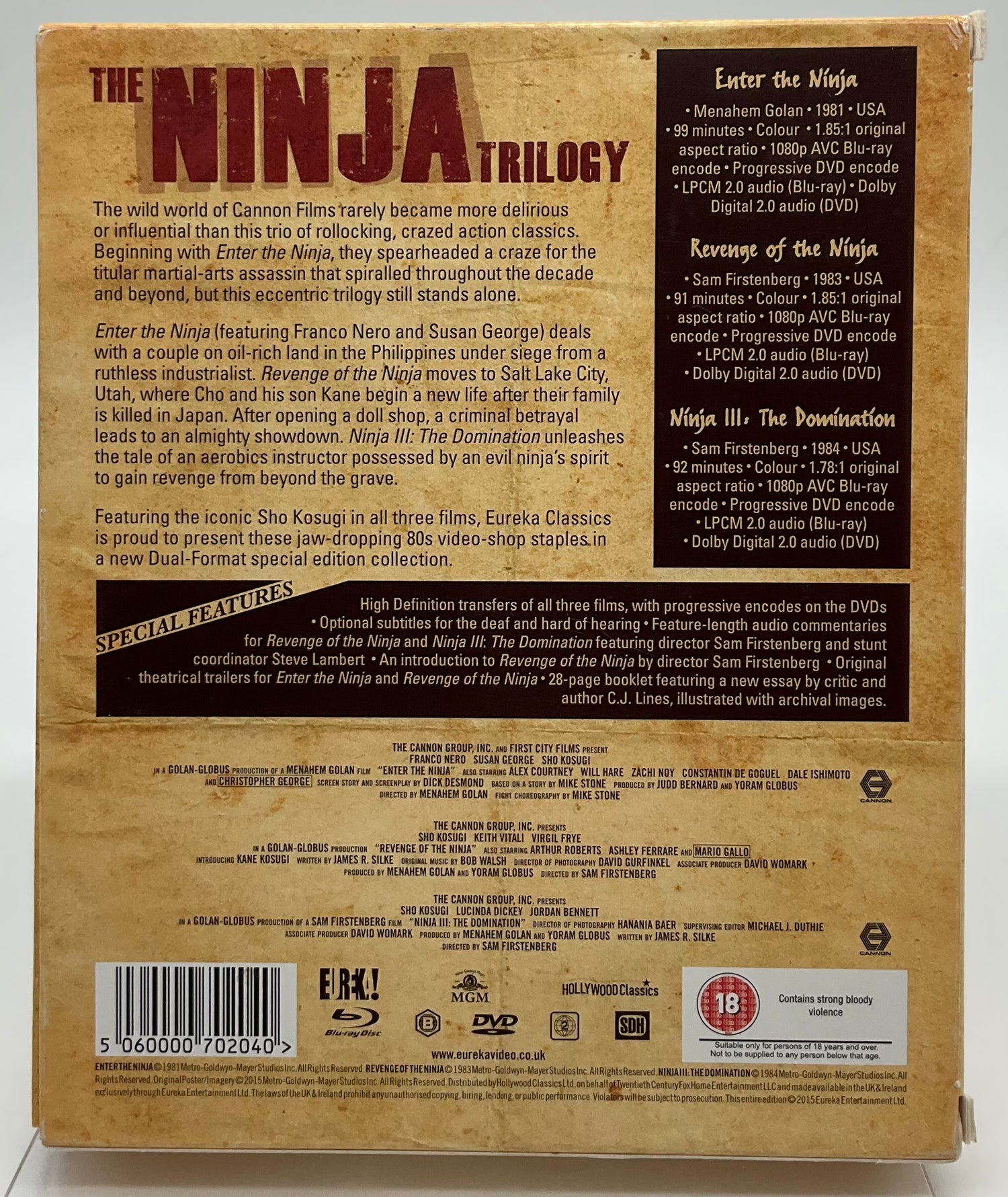 Enter The Ninja (featuring Franco Nero and Susan George) deals with a couple on oil-rich country in the Philippines under siege from a ruthless industrialist. Revenge of the Ninja moves to Salt Lake City, Utah, where Cho and his son Kane begin a new life after Their family is killed in Japan. After opening a doll shop, a criminal betrayal leads to an almighty showdown. Ninja III: The Domination unleashes the tale of an aerobics instructor possessed by an evil ninja's spirit to gain revenge from beyond the grave.
