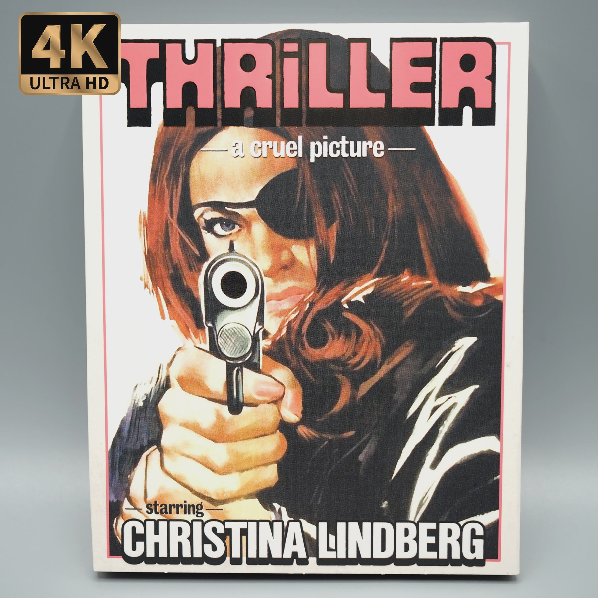 From maverick Swedish director, Bo Arne Vibenius, THRILLER – A CRUEL PICTURE is indisputably one of Grindhouse cinema’s crown jewels. Filled with unforgettable moments of sleazy sex and vicious brutality, including one of the most jarring scenes in exploitation film history, Vinegar Syndrome is proud to unleash the definitive THRILLER experience on UHD for the very first time, lovingly assembled from a pristine 4K restoration of the fully uncensored 16mm camera negative, containing never before seen material. This special edition also contains a bounty of exclusive extra features, including the complete original English language version, THEY CALL HER ONE EYE (aka HOOKER’S REVENGE), containing alternate and extended footage not seen since the film’s 42nd Street playdates.