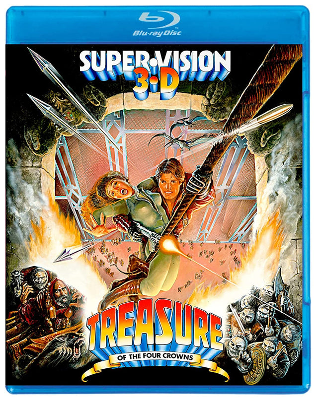 When a set of mystical artifacts falls into the hands of a diabolical cult leader with plans for world domination, it’s up to the devil-may-care J.T. Striker (Tony Anthony, Comin’ at Ya!) to reclaim them. Together with a ragtag team of mercenaries, Striker must battle terrifying natural—and supernatural—enemies within a fortress-like temple where the stakes may be nothing less than the balance between good and evil. So get ready for an unforgettable adventure, with top-notch direction by Ferdinando Baldi (Django, Prepare a Coffin), thrilling score by the legendary Ennio Morricone (The Good, the Bad and the Ugly) and a fiery apocalyptic climax so real it’ll send you running for cover! This edition of Treasure of the Four Crowns comes with an eye-popping 3-D restoration by 3-D Film Archive!