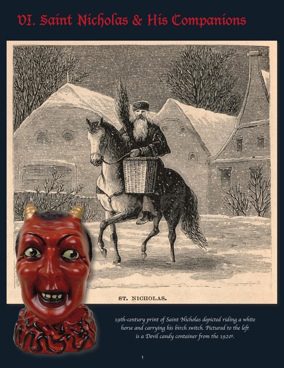 Full of pagan lore, vintage images, poems & history covering the dark origins and traditions of Christmas. The book makes a fine holiday centerpiece decoration and Winter Solstice companion for our Vintage Hallowe’en book. This high-end production comes with a custom emboss and gold-foiled hardcover. Hand bound with 184-thick offset printed full color art pages.